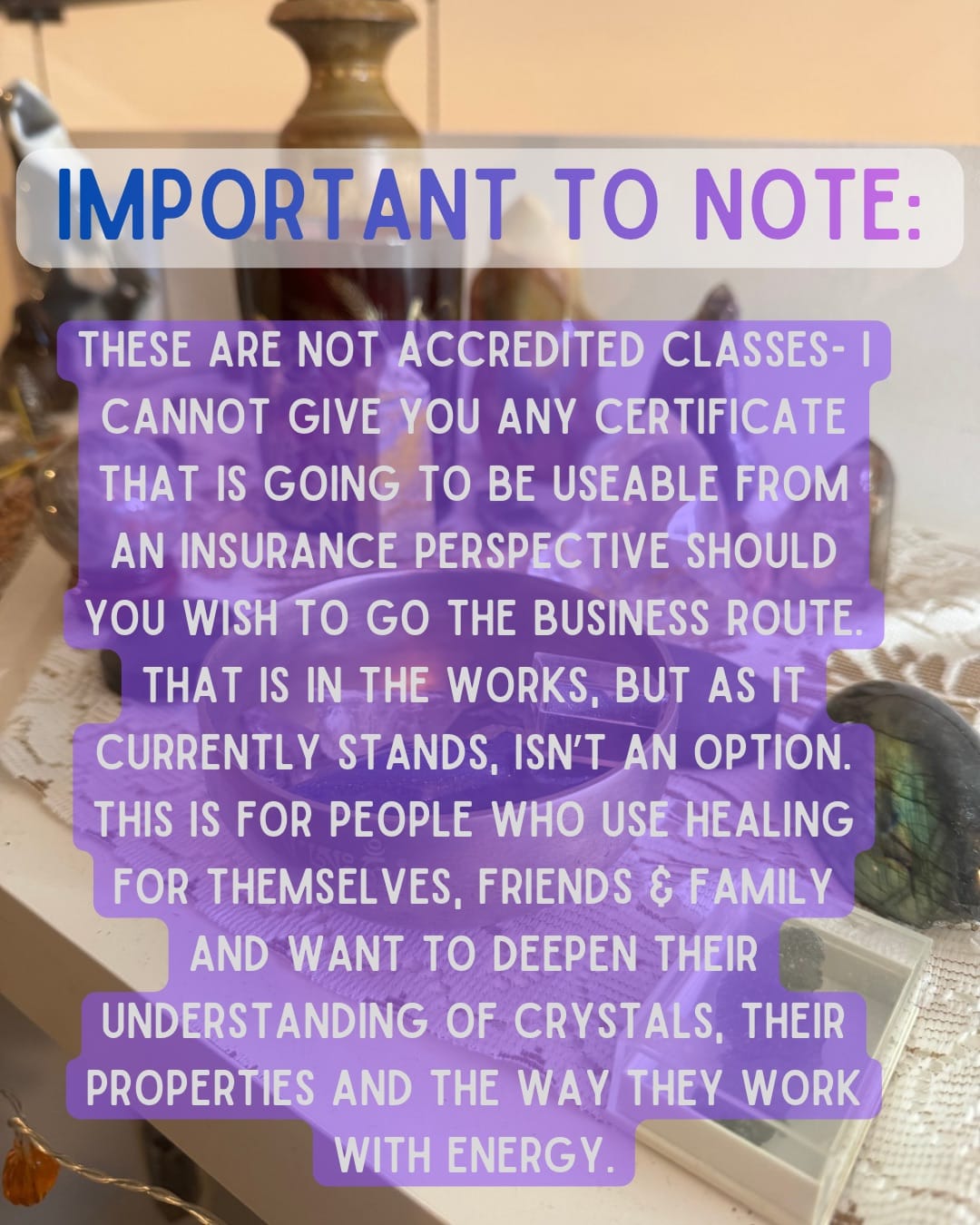 This day-time offering will cover the basics of crystals and working with them. Expect to learn: