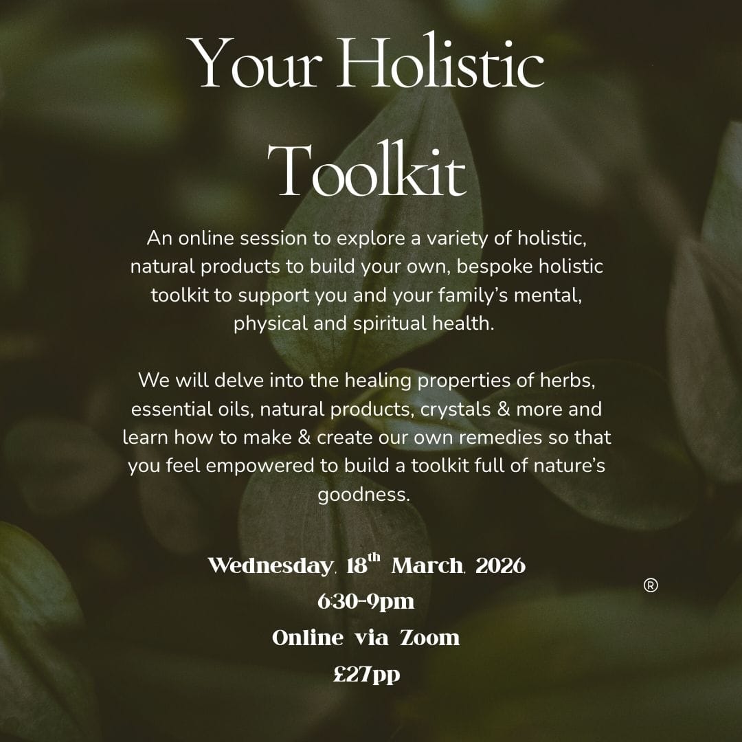 An online session to explore a variety of holistic, natural products to build your own, bespoke holistic toolkit to support you and your family’s mental, physical and spiritual health.